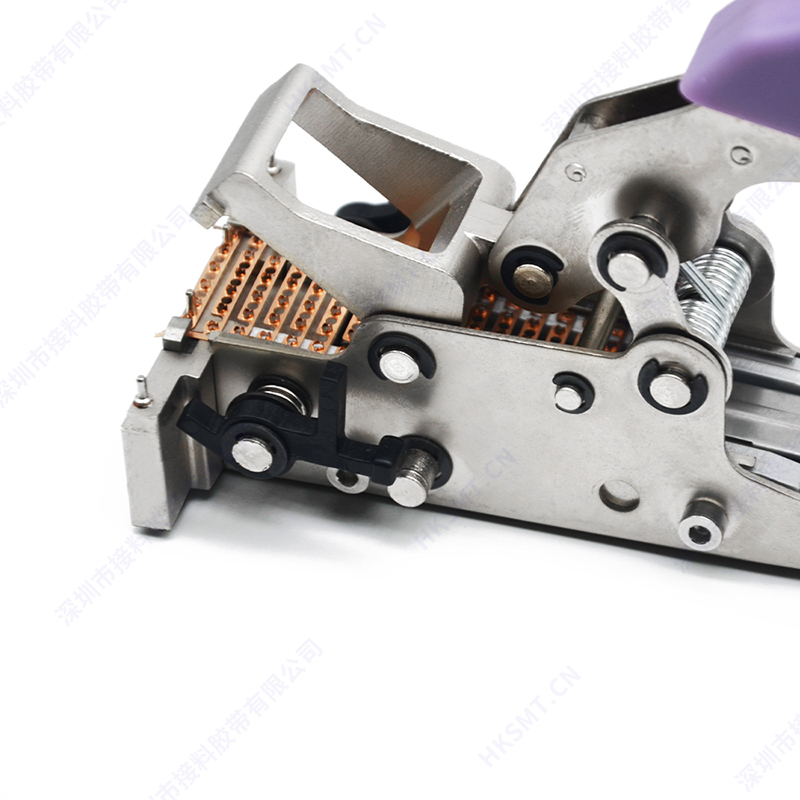 MTL60成排接料鉗用于接8mm-72mm寬的各種料帶,每次使用配合接料銅扣,連片式(單片有20個(gè)銅扣),省去了不用都要放銅扣進(jìn)去的時(shí)間, 接料銅扣的材質(zhì)也與市場上的很多產(chǎn)品不同,銅刺鋒利,可以穿透各種紙帶,膠帶。 產(chǎn)品特點(diǎn)?兩邊安裝了優(yōu)質(zhì)彈簧鋼材質(zhì)的C型扣,緩沖操作過程中各傳動(dòng)環(huán)節(jié)過度的力量。?增加了壓力調(diào)節(jié)裝置,可以針對(duì)不同的料帶的厚薄規(guī)格,根據(jù)需要調(diào)節(jié)接壓銅扣的力度。?手柄開口更加小巧靈活,易手持接料。?MTL60為公司獨(dú)立研發(fā),擁有自主研發(fā)的專利證書,持續(xù)改進(jìn)的新產(chǎn)品.